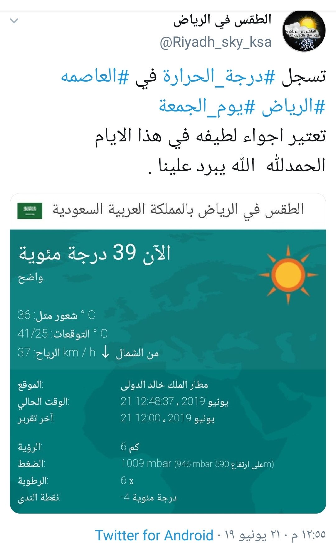 الطقس في الرياض On Twitter تسجل درجة الحرارة يوم الجمعة الان 45 مئوية سبحان الله الفرق بين الجمعه الماضية 39 مئوي و اليوم 45 مئوي